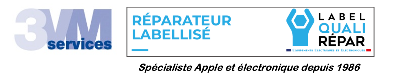 Une garantie commerciale de 3 mois minimum et jusqu'à un an sur la réparation. Une conformité des pièces utilisées pour la tréparation de votre Mac.
